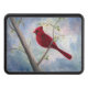 Des médias mélangés originaux peignant par Brenda Thour d'une séance cardinale masculine rouge sur une branche d'arbre nue avec un ciel bleu et rose abstrait. Copyright par Brenda Thour 2005.