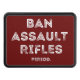 Pro Gun Control typographie style remorque hitch couverture avec "Ban Assault Rifles. Période" texte en caractères blancs en détresse.