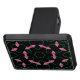A striking abstract design featuring glowing green geometric forms intertwined with vivid pink petal shapes, set against a deep black background. This kaleidoscopic artwork blends digital symmetry with floral inspiration, creating a bold, modern mandala that feels both organic and futuristic. Perfect as statement wall art, home décor, apparel, or accessories for lovers of vibrant colour, sacred geometry, and contemporary abstract design.