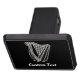 Icône de harpe noire et blanche avec décoration de noeud celtique. Couleur arrière - plan personnalisée. Texte personnalisé.