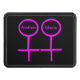 Cette étonnante hitch est conçue pour les lesbiennes. Il comporte deux symboles féminins roses côte à côte. L'arrière - plan est noir et il y a du texte rose personnalisable à l'intérieur de chacun des symboles pour mettre des noms.