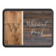 Couvrez votre hitch de remorque pas si agréable avec le style classique de la couverture de hitch Rustic Wood Tone Monogram. Personnalisez avec votre nom et votre monogramme.