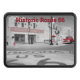 Ce hitch de remorque présente une photographie nostalgique de Arizona Route 66 en monochrome avec couleur rouge éclaboussure. Winslow, Arizona est l'une des nombreuses villes le long de la route historique US 66 qui est également connue comme Main Street of American et la route Mother. La US Route 66 était l'une des routes américaines originales qui reliait Chicago à Los Angeles par huit États (dont l'Illinois et la Californie). Photo originale (couleur) de Patricia AZ Phillips