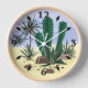 Cacti, succulents in the desert sands, rocks against the blue sky.