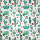 cactus and ladybug pattern - white background, fun and cute pattern of cactus and ladybug, green vibe, white background