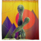 lovely geometrical and photo - mixed media design shower curtain. Sun, mountains and cacti plants.