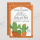 Cute baby shower invitation with a fun cactus family. Created in greens and terracotta orange.