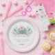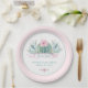 Cactus baby shower paper plates with cute pink floral cactus on a pink and green background. You can add your own text to personalize.