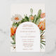 Wedding invitation featuring an arched frame of watercolor cactus and desert flowers. Customize with your information. Click "click to customize further" to change the font style, size or colour.