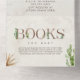 Neutral boho baby shower theme with "BOY" and "BOOKS" lettering in leather inspired faux texture decorated with boho cactus and other botanical designs. Botanical designs at corners. Background is watercolor inspired.