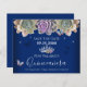 Elegant and trendy design with fancy script typography. All text is adjustable and easy to change for your own party needs. Great elegant Quinceañera design. Available in different colours. Beautiful princess tiara with succulent cactus arrangement. blue Butterfly floral border. Different background colours available. Save the Date invitations