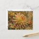 Brighten someone's day with this postcard which features a spectacular cactus flowered dahlia in shades of salmon, orange, gold and pale yellow. Far in the background are more dahlias and an apple tree full of red fruit.
