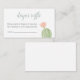 A beautiful desert themed Diaper Raffle enclosure card. Features a delicate watercolor cactus illustration in soothing shades of pink and green. Perfect for a modern southwestern or boho baby shower. Coordinates perfectly with the Cactus Baby Shower Invitation collection. Select the "Personalize" button if you would like to add different wording.
