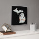 Cactus Filled Michigan Silhouette With Home Typography and Heart on Black. Mint, grey, peach cactus floral pattern fills this Michigan silhouette with home and a heart. Design by the Michigander.