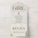 Neutral boho baby shower theme with "GIRL" and "BOOKS" lettering in leather inspired faux texture decorated with boho cactus, florals and other botanical designs. Botanical designs at corners. Background is watercolor inspired.