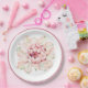 A pattern of a watercolor Cactus Flower in the centre of a ring of pink.