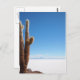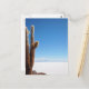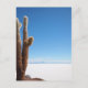 Carte postale d'un cactus géant sur les salines blanches du Salar de Uyuni en Bolivie.