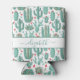 A chic white background decorated with a whimsical pattern of painted cactus, cacti and succulents and red and green hearts.