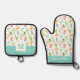 Cactus Pastel Watercolor Pattern Oven Mitt & Pot Holder Set