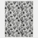An original hand drawn pattern made up of a variety of cactus and succulent plant motifs in a desert like landscape.