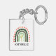 Cactus Rainbow custom text Modern Desert Keychain