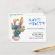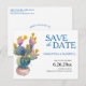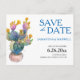 Planning a Mexican themed or destination wedding? Invite your guests to Save the Date with these watercolor wedding announcement postcards, featuring a hand painted style cacti on a clean white background and your details in a rich blue traditional serif font. The reverse is space to add mailing details. Add your event details beneath using the template fields provided. A botanical choice for weddings in a Southwest setting. Visit www.zazzle.com/vginvites to see more of my designs.