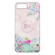This cactus iphone case features a watercolor style cactus and succulents design with a monogram inside a faux rose gold foil geometric shape with blush pink marble background. Personalize it with your own initials.