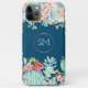 This phone case features a modern floral design with faux gold monogram on an ocean blue background with cactus, succulent and coral flowers. Personalize it with your own initials.