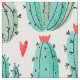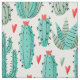 Cactus succulents heart pattern white green fabric