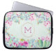 This personalized cactus computer sleeve features a modern floral design with geometric monogram and watercolor cactus and succulents plants and flowers. Personalize it with an initial.