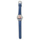 The blue band is the right color for a boys watch. My grandson loves lacrosse and the watch is easy to put on. He is ten years old. The lacrosse picture is very clear and I like the blue hands on the watch. It's good for teaching time.