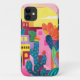 A vibrant desert scene featuring blooming cacti, colourful geometric buildings, and a glowing sunset. The bold colour palette blends warm pinks, yellows, and deep blues, creating a lively Southwestern atmosphere. Perfect for adding a touch of warmth and artistic charm to any space!