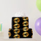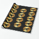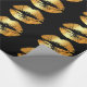 Papier d'emballage de luxe avec des baisers d'or de lèvres de faux sur un arrière - plan noir. Papier d'emballage distingué.