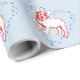 Chien de taule français en rouge et blanc avec des étoiles bleues autour d'un arrière - plan bleu clair.