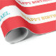 Venez un, venez tous ! Complétez votre décor à la plus grande fête d'anniversaire sous le chapiteau avec nos modèles de papier enveloppant de carnaval de cirque. Ce papier d'emballage pour fête d'anniversaire de carnaval de cirque présente un libellé rouge et turquoise sur un papier d'emballage de fête.