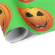 De mignons citrouilles orange sur un papier d'emballage motif arrière - plan vert brillant serait parfait pour une fête d'Halloween ou un cadeau. Choisissez parmi plusieurs longueurs et styles différents.