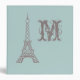 La Tour Eiffel décore ce classeur d'aqua poussiéreux. Personnalisez ce classeur en changeant le monogramme initial en fonction de vos besoins. Le dessin est tiré d'une illustration originale.