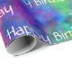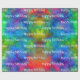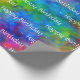 Superbe papier d'emballage brillant éclatant avec un arc-en-ciel de couleurs dans un design qui borde entre l'art fractal et la teinture à cravate. "Joyeux anniversaire" peut être modifié pour convenir à tout événement ou supprimé complètement (laissez simplement le champ de texte vide). ** REMARQUE : La vue "plat" vous montre une section de papier de trois pieds de long. La longueur minimale du rouleau est de six pieds, de sorte que la vue "Seam" vous montre où la première section de trois pieds rencontre la deuxième section de trois pieds. Ainsi, un rouleau de 30 pieds par exemple aurait dix sections de 3 pieds qui se répéteraient.