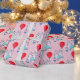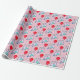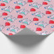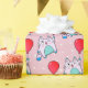 Cute kitty flottant avec ballon rouge sur pois rose et blanc arrière - plan.
