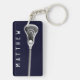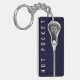 Porte-clés de crosse avec bâton de crosse et ligne amusante sur fond bleu marine. Modifiez le texte pour ajouter un nom pour personnaliser.