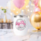 Personnalisez ce mug thermique de qualité pour le vin / café avec des noms de mariée et d'invités tendance et rétro des années 70 sur le thème de la dernière disco de la mariée pour l'enterrement de vie de jeune fille / week-end, avec une boule disco argentée et des polices de caractères rose chaud groovy et des accents de design rétro en forme d'explosion d'étoiles sur le devant, et le nom de la demoiselle d'honneur ou de l'invité de la fête au dos. Entrez facilement les détails de votre texte et faites-en votre propre ! Les demandes de conception personnalisées et les questions sont toujours les bienvenues - cliquez sur le bouton de message, ou envoyez un e-mail directement à : contact@figandlilyco.com