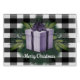 Étendez la fête de Noël cette saison avec une Buffalo Plaid Holiday Greeting Card. Le design de la carte de voeux comprend un cadeau de Noël rayé orné de verdure de vacances contre un arrière - plan en vichy noir et blanc. Autres cadeaux et objets de vacances disponibles avec ce design aussi.