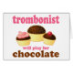 Cette conception humoristique de tromboniste a un trio des petits gâteaux et du slogan de musique qui indique le trombone - jouera pour le chocolat.