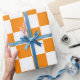 Un papier d'emballage a conçu avec un motif checkered orange et blanc dans de grande taille supplémentaire. Vous pouvez changer l'orange pour une couleur différente.