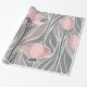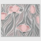 Un motif floral avec tulipes roses douces contre un arrière - plan gris muet.