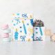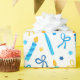Ce papier d'emballage moderne et tendance est fabuleux ! Il a des bougies bleues et or, des étoiles de David et des arcs. Obtenez assez pour envelopper tous vos cadeaux.