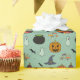 Happy Halloween II - Combinant les icônes d’Halloween - chaudron de sorcière, casquette de sorcière, fantômes, chauves-souris et citrouilles en un motif arrière - plan et transparent sur le vert.