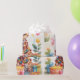 Girafe de dessin animé souriant dans la jungle avec des ballons. Un design idéal pour envelopper des cadeaux pour les enfants de tout âge.