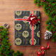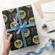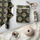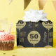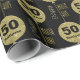 Des ballons de parties scintillant simulés en or avec des cordes font un motif continu à partir de l'âge de 50 ans et le nom de la personne anniversaire. "Joyeux Anniversaire" embrasse la chaîne de ballons sur un arrière - plan noir. Le papier d'emballage parfait pour n'importe quel glamour 50 ans.