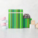 Papier à envelopper avec motif à rayures dans des couleurs de différentes nuances de vert (chaux, turquoise, olive, jaune-vert, etc.)